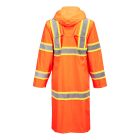 - Cleverly designed with an extra long length of 122cm, this coat ensures total protection in adverse weather conditions and offers exceptional value for money. This lightweight coat features a pack-away hood, stud and zip storm flap, large pockets for ample storage, a radio loop and a badge holder.